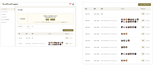 働く場所と予定・実績を入力することで、どこに誰がいるのかを可視化、コミュニケーションのきっかけを作ります