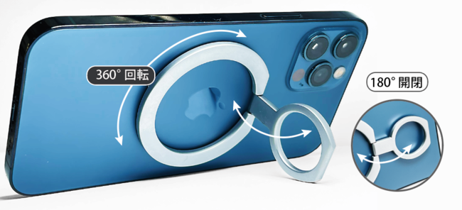 生活雑貨を取り扱う株式会社39thanksは、大手クラウドファンディング「CAMPFIRE」にて、マグネットを利用してスマホへ後付できる、マグネットスマホリング「MAGHO RING」の予約購入を実施中です。このリングは、通常のスマホリングと比べてリング支柱が長く、縦置きスタンドの傾斜角度が高いことが特徴です。 iPhone以外のスマートフォンでも使えるようにマグネットシールも付属。縦向きでの視聴が多い方にうってつけのスマホリングです。