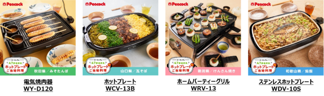 ピーコック魔法瓶工業株式会社(本社:大阪市、社長:山中千佳)は、ホットプレートを使った全国47都道府県のご当地料理のレシピを紹介する企画『47都道府県 ホットプレート de ご当地料理』をスタートいたしました。ピーコックのホットプレートならではの特徴を活かし、中々帰れないふるさとや、行ってみたい都道府県の美味しい料理を、自宅で簡単にお楽しみいただけます。