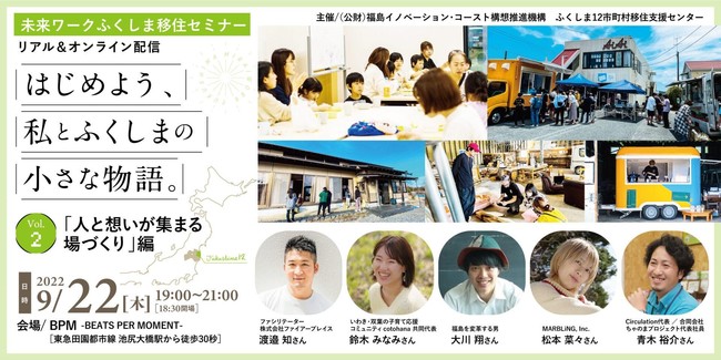 未来ワークふくしま移住セミナー『はじめよう、私とふくしまの小さな物語。』vol.2 人と想いが集まる場づくり編を開催します