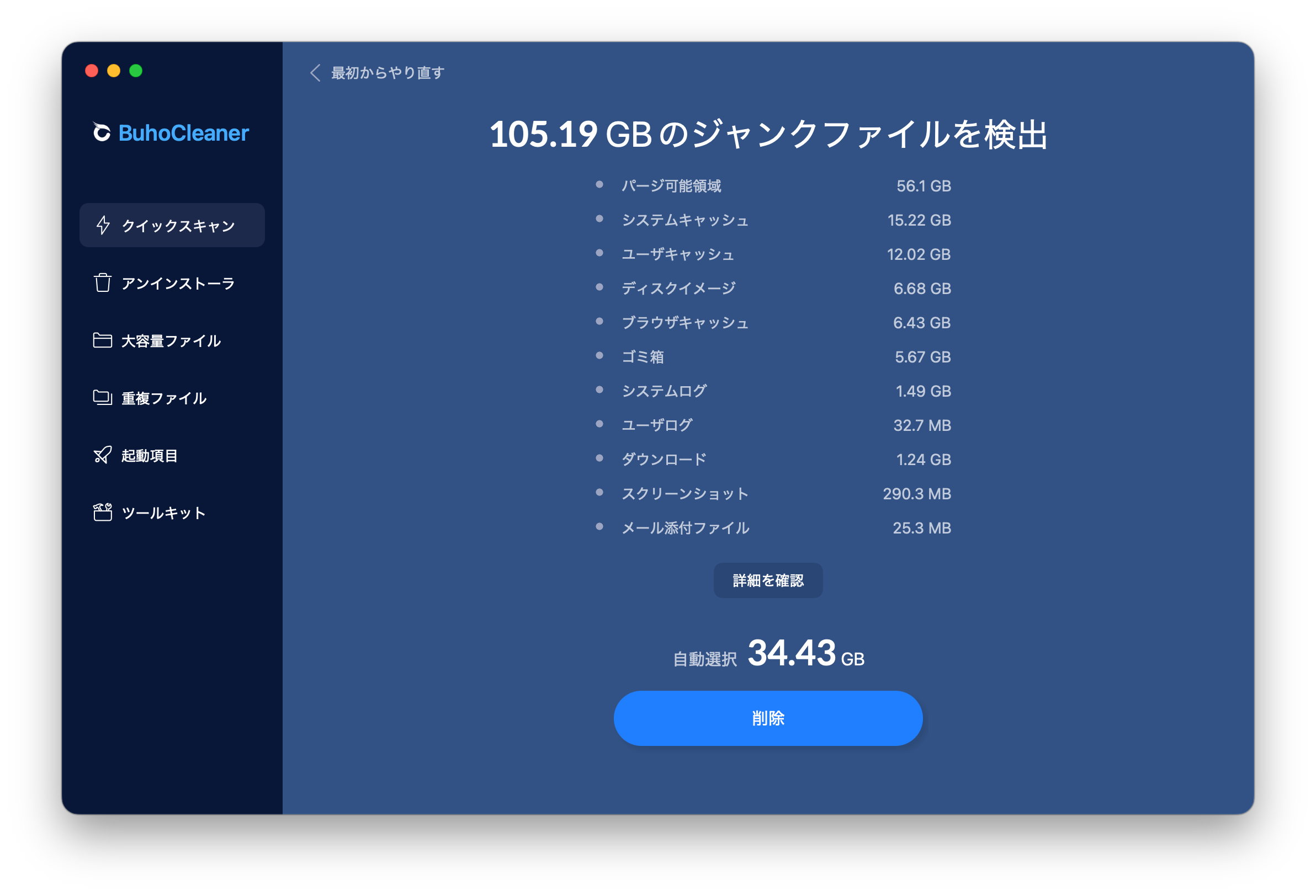 BuhoCleanerはMacクリーナーツールとして、Macから不要なファイルを削除したり、アプリと関連ファイルを徹底的にアンインストールしたり、RAMを解放したりすることができます。お使いのMacのストレージが足りない、重い・遅いと感じた時に役に立ちます。BuhoCleaner 公式サイト:https://www.drbuho.com/jp/buhocleaner