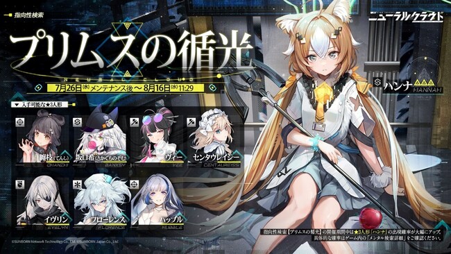 7月26日(水)より新人形【ハンナ(CV:白砂沙帆) 】の出現確率がアップする特別な指向性検索「プリムスの循光」を開催します。