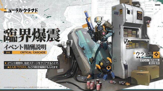 株式会社サンボーンジャパンは、シミュレーションゲーム『ドールズフロントライン』のスピンオフ作、探索型ストラテジーRPG『ドールズフロントライン:ニューラルクラウド』にて大型イベント【臨界爆震(りんかいばくしん)】を7月27日(水)より開催いたします。イベントの開催に合わせて、期間限定ミッションや特殊ミニゲームなどのやりこみ要素満載な施策も用意しております。