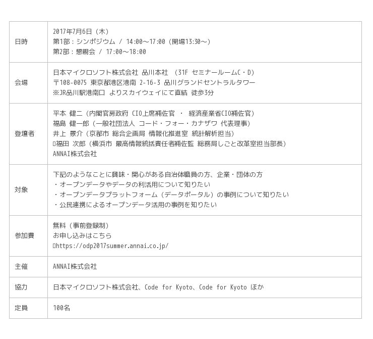 Drupalによる開発及びコンサルティングを専門とするANNAI株式会社(本社:京都府下京区、代表取締役:紀野 惠、以下ANNAI)は、7月6日 日本マイクロソフト 株式会社 品川本社にて、オープンデータ利活用を啓発するイベント「オープンデータ・プラットフォームと公民連携シンポジウム 〜自治体における、これからのオープンデータの利活用を考える〜」を開催します。