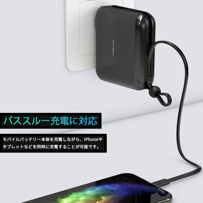 モバイルバッテリーの一体型モデル「MATECH LightCell+ 10,000mAh」を2021年2月8日よりAmazon.co.jpにて発売。MFi認証済みLightningケーブルにType-Cポートが搭載したコンセント型モバイルバッテリーです。