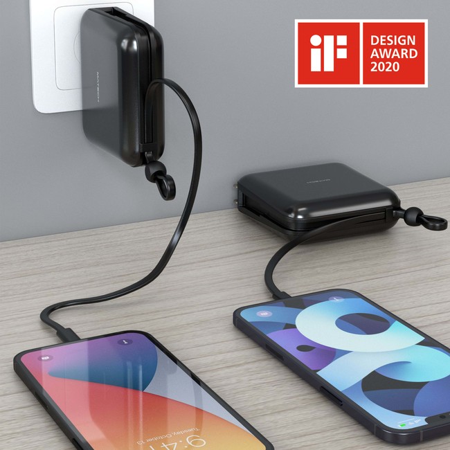 そういった問題を解決するために、ユーザーに合わせた機能と使いやすいデザイン、実用性とデザインを結合して、「LightCell+ 10000mAh」を生み出しました。充電器とモバイルバッテリーを1台にし、USB-Cポート、USB-Aポートを一挙に搭載し、iPhoneユーザー向けにMFiライトニングケーブルをモバイルバッテリーに内蔵しました。内蔵したケーブルも収納しやすくスマートなデザインです。