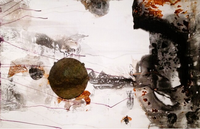 これまでの技法や自身を回顧し本展のためにほとんどの作品が新たに制作されました。 版画のような技法を用いるのは、「この世界がパラレルワールドと想定するなら、色々な “私” がいる」という作家独自の視点により、鉄錆でできた自身の分身として苗を植えるように生き物の版画を、愛につながるミーモに願いを込めて画面上に残します。 それらの作品は、作家自身の内面を映す鏡でありながら、生命の根源、生と死、破壊と再生の象徴として私たちの前に現れます。 この機会に現代美術家、下野友嗣の世界をぜひご高覧いただければ幸いです。
