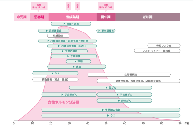 女性は月経が開始してから老年期まで、様々な健康課題が立ちはだかってきます。