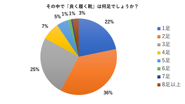 無駄が多い?靴の保有数1位は「8足以上」で34%、良く履く靴の数1位は「2足」で36%