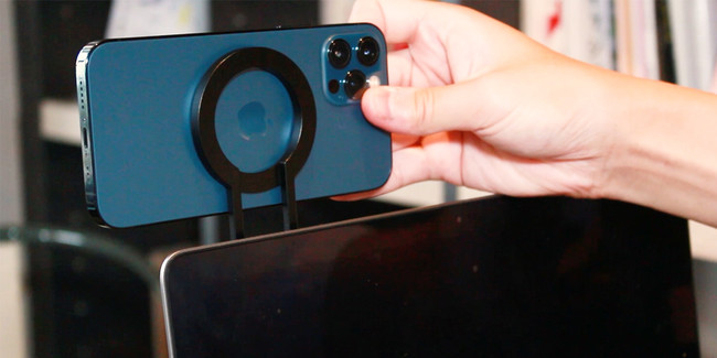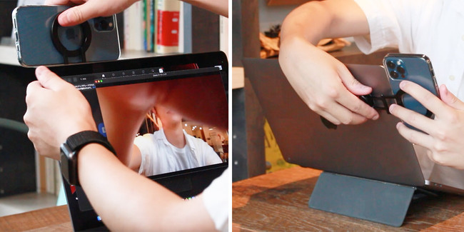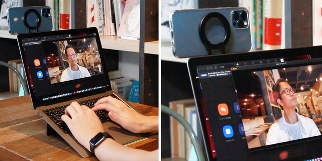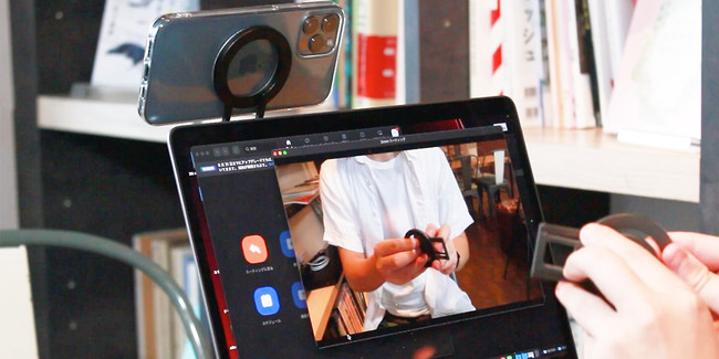 「MAGHO setup stand」であれば、iPhoneの背面カメラを、最適な形でmacへセットアップできる。