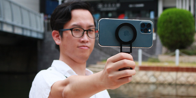 「MAGHO setup stand」を持ち手すれば、自撮りやVlog撮影がしやすくなります。
