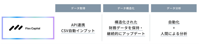 Flex Capitalでは、テクノロジーを駆使したデータ分析を強みとしており、与信審査においては必要なデータが十分に取得できることが前提となっています。