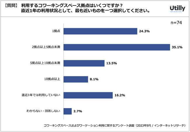 Q. 利用するコワーキングスペース拠点はいくつですか?直近1年の利用状況として、最も近いものを一つ選んでください。