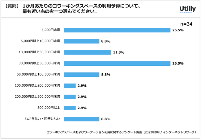 Q. 1か月あたりのコワーキングスペースの利用予算について最も近いものを一つ選んでください。