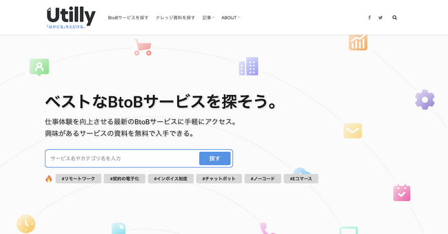 Utilly( https://utilly.jp/ )は、株式会社GO TO MARKETが運営するビジネスパーソン向けのWebメディアです。法人サービスのレビューコンテンツやホワイトペーパーの掲載ポータルなどの機能を提供しています。