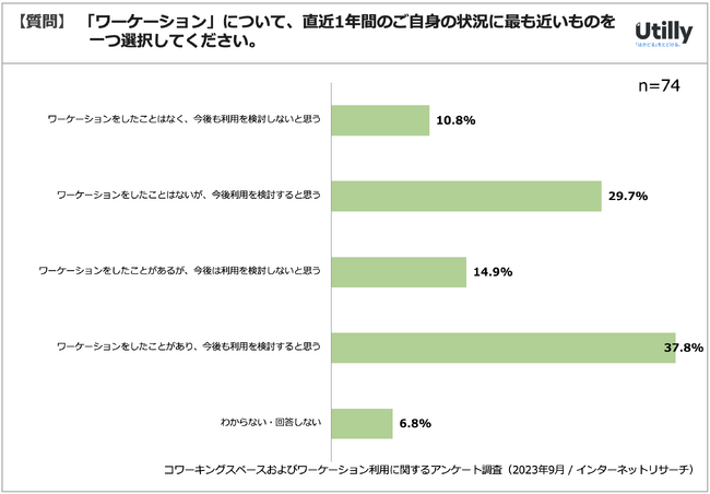 ビジネスメディアUtilly(運営会社:株式会社GO TO MARKET、所在地:東京都渋谷区)では、2023年9月に「コワーキングスペースおよびワーケーション利用に関する調査」を行いました。