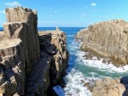 東尋坊と同じ柱状節理の岩が織り成す景観の中、一風変わった岩が点在するほか、散策路を辿ると小島に渡ることができたり洞穴を覗くこともできます。越前松島水族館や宿泊施設が隣接し、家族連れや遠足でにぎわう観光地となっています。