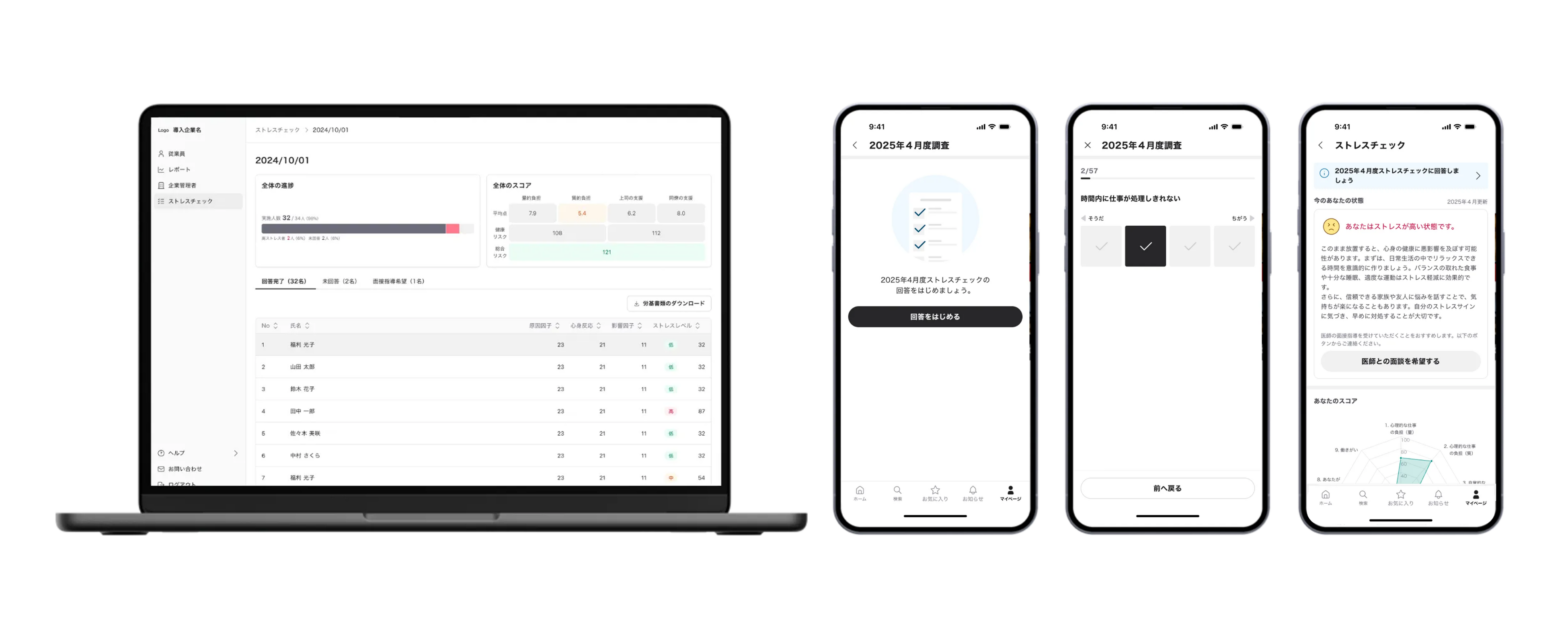- 産業医による高ストレス者の判別と、産業医面談の実施意向を確認可能