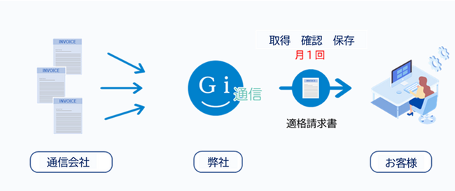 Gi通信が、複数の通信会社の請求をまとめてお支払いし、「適格請求書」を発行します。