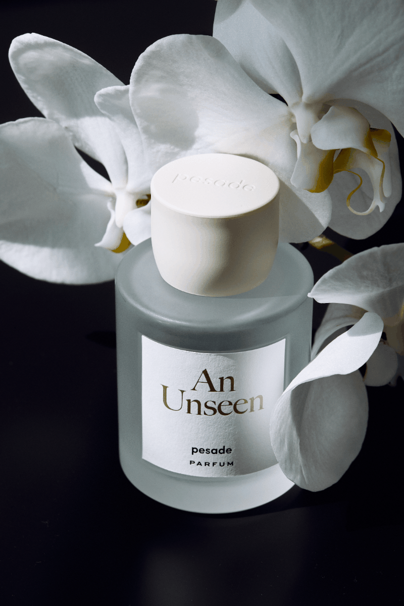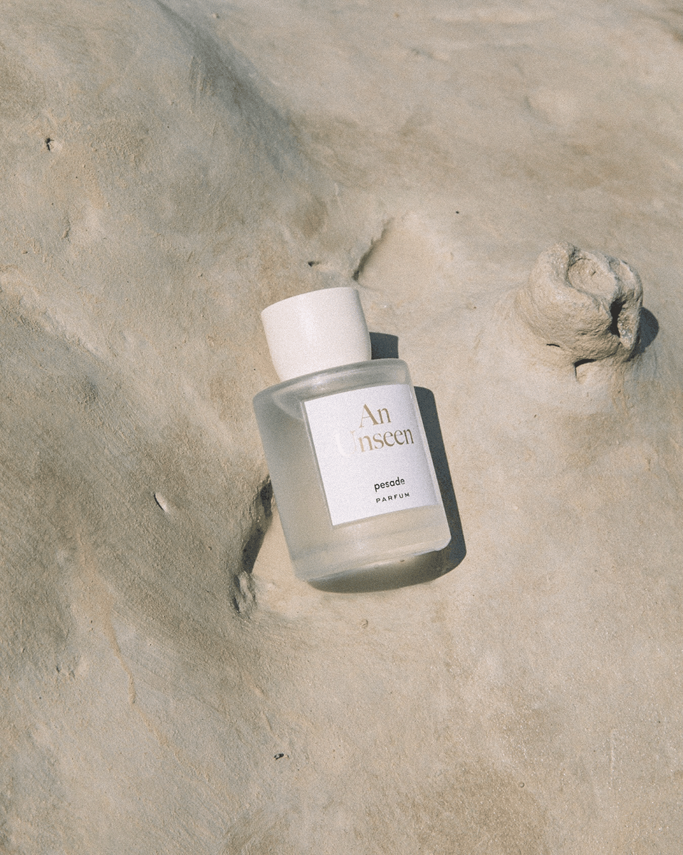 An Unseenアン アンシーンのトップには、陽だまりの庭にふんわりと広がる、清らかでみずみずしいネロリの香り。やわらかな花々の香りに、凛としたプチグレンと透明感のあるカシュメランが重なり、爽やかさの中に研ぎ澄まされた奥行きを生み出します。やがて、包み込むようなムスクの温もりが繊細に湧き立ち、五感を魅了する香りへと昇華していきます。
