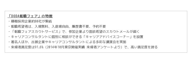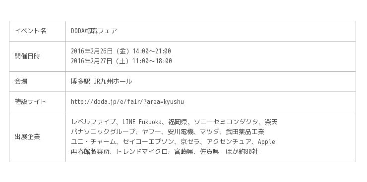 日本最大級の転職イベント「DODA転職フェア」 福岡で開催 〜2日間で約80社が参加、過去最大規模の約2,000人の来場を見込む〜