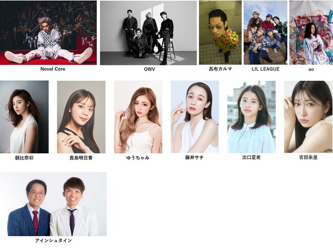 朝比奈彩、香川沙耶、貴島明日香、ギャビー、新澤菜央(NMB48) 、出口夏希、藤井サチ、山本望叶(NMB48)、ゆいちゃみ、ゆうちゃみ、吉田朱里、さくら、Juni、せいせい、園田乃彩、磨田寛大、山崎心、