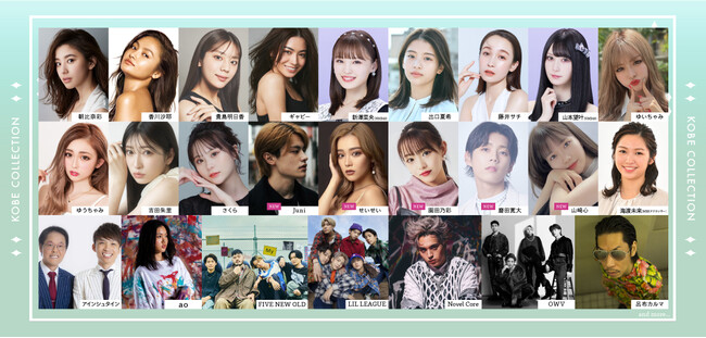 今年の神戸コレクションも豪華ゲストが勢揃い!ファッションショーには、朝比奈彩、貴島明日香、ゆうちゃみ、藤井サチ、出口夏希、吉田朱里らがランウェイに登場し、最新のリアルクローズを披露。音楽ライブには、Novel Core、OWV、呂布カルマ、LIL LEAGUE、ao、FIVE NEW OLDが登場し圧巻のパフォーマンスで会場を盛り上げます。