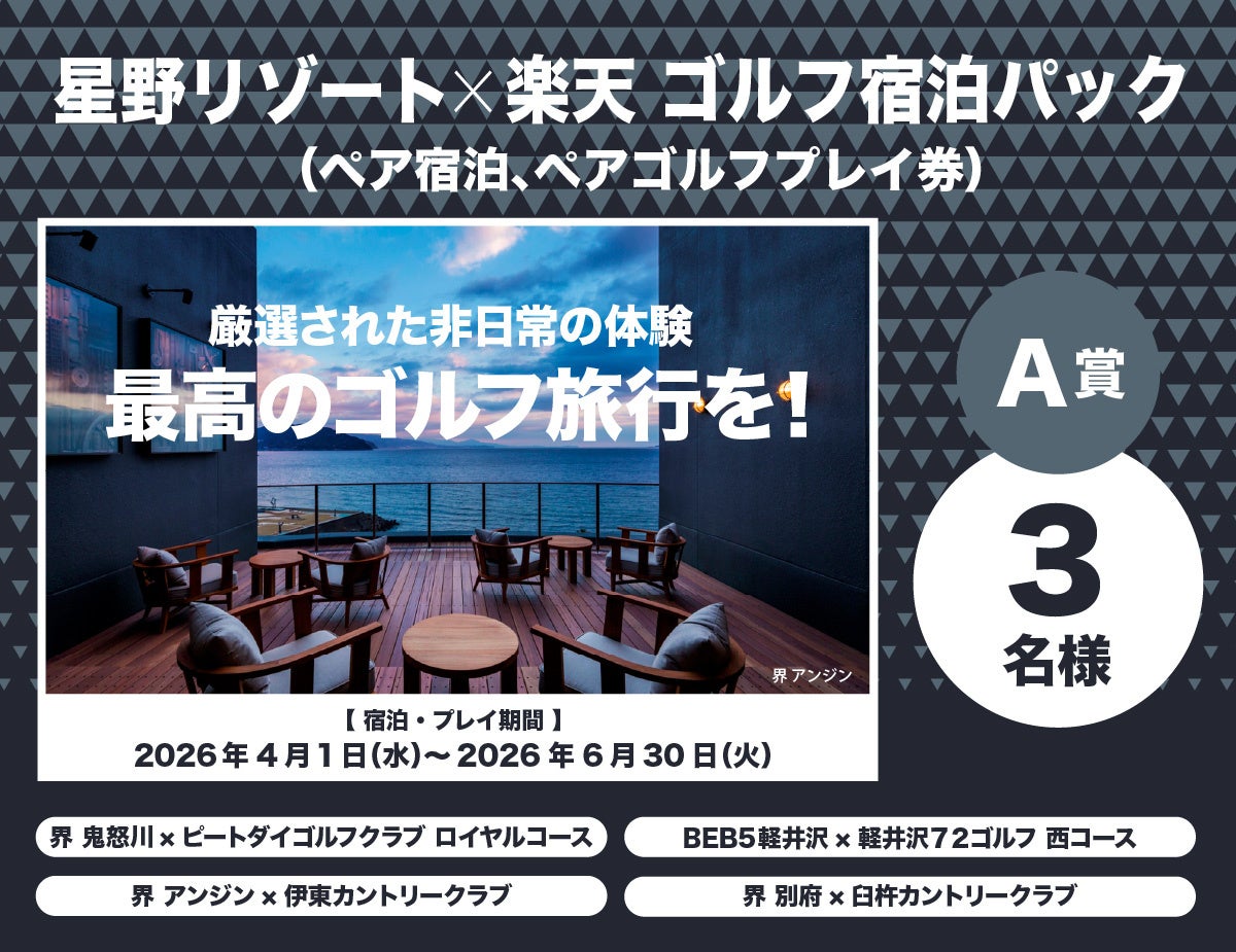 A賞 3名様 / 星野リゾート × 楽天ゴルフ宿泊パック(ペア宿泊、ペアゴルフプレイ券)