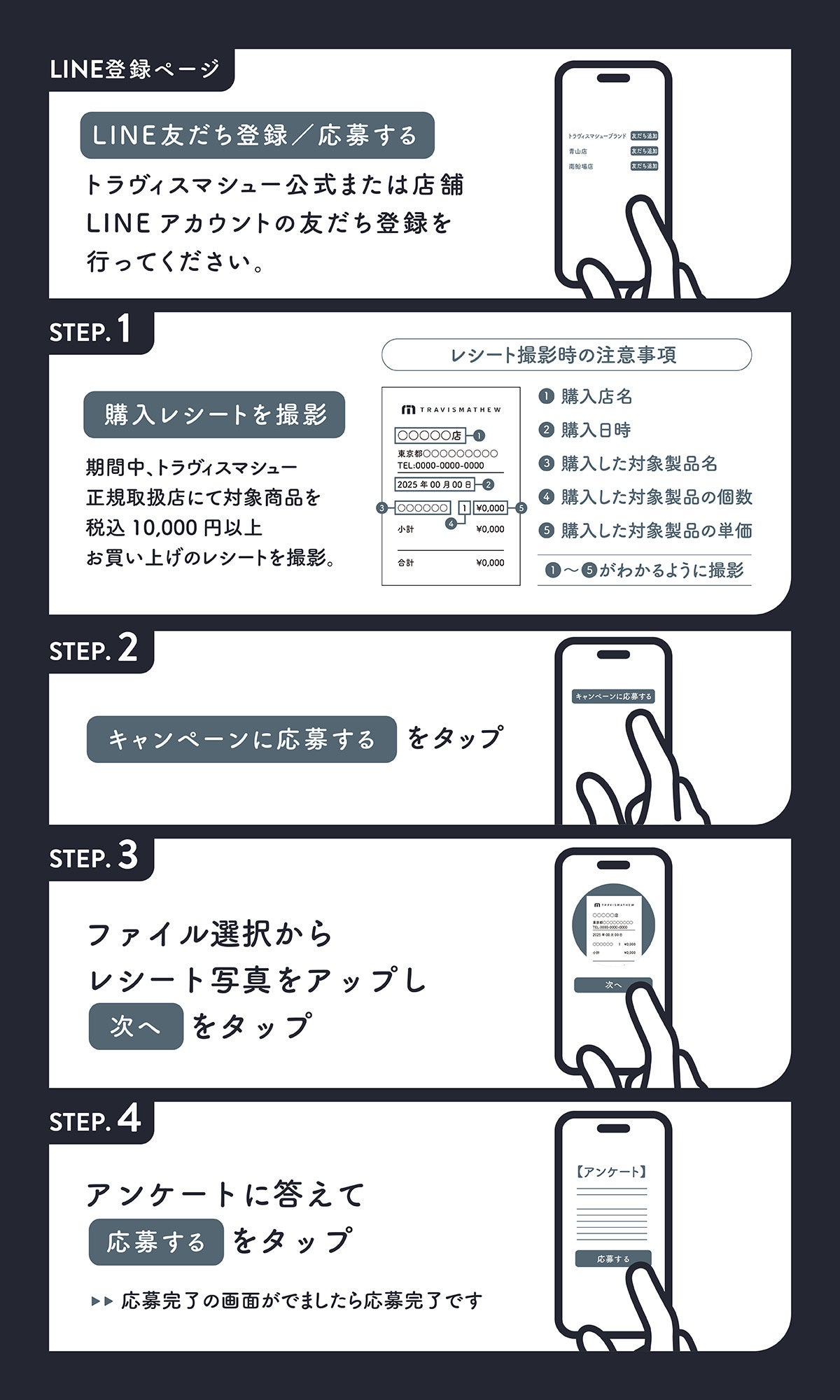 【応募方法】LINEより必要項目と購入商品レシートをアップの上、応募。