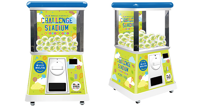 モンスターカプセルは、スマイルタンクが長年のイベント企画・運営経験を活かし、独自に開発した巨大カプセルマシーンです。 商業施設などに設置されている一般的な2段式のカプセルマシーンの高さが約1.4m程度であるのに対し、モンスターカプセルは2.4mと大迫力のサイズ感。回しているときにスマートフォンで撮影し、SNSに投稿するお客様が多くいらっしゃいます。イベント会場やクライアントに合わせたオリジナルラッピングも可能なため、企業や商品・サービスの認知向上・PRイベントにお役立ていただけます。今回のイベントでは『まなびのharemachi ゴールデンウィークCHALLENGE_STADIUM-チャレンジスタジアム-』のイベントデザインに合わせてオリジナルラッピングを施工し、1F 未来スクエアに設置いたします。