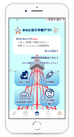 *「みなと母子手帳アプリ」は、ミラボが開発する「子育てモバイル」をベースとした港区オリジナルのアプリです。