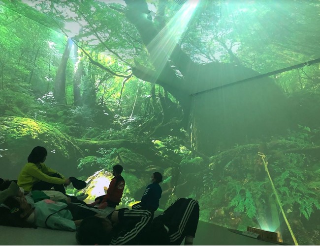 5面の大型マルチスクリーンに十勝の森林や屋久島の天然杉などを映し出し、森の風や木々が揺れる音、複数の天然の木々の香りを再現しあたかも実際に自然にいるような演出を行う日本初(※4)の常設施設です。