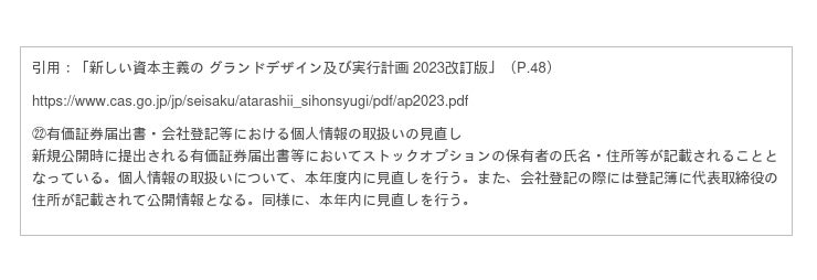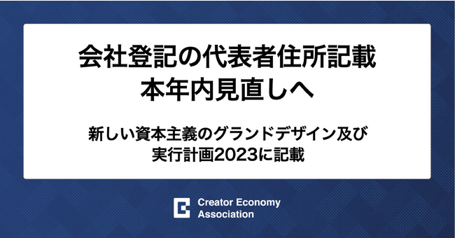 新しい資本主義のグランドデザイン及び実行計画において、会社登記の代表取締役の住所記載を本年内に見直すことが記載されました