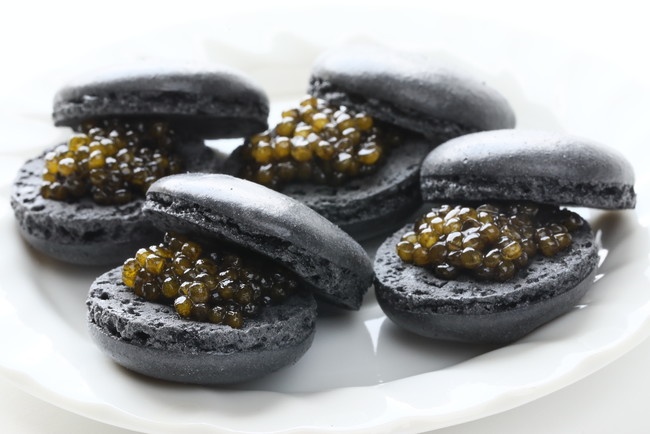 程よく甘い竹炭を練りこんだマカロンの上に大粒で高品質のキャビアをのせる事によって塩味が加わり、口の中に何とも言えない芳醇な甘さが広がります。大切な方へのワンランク上の贈り物や、父の日などの記念日のギフトにぴったりの逸品です。