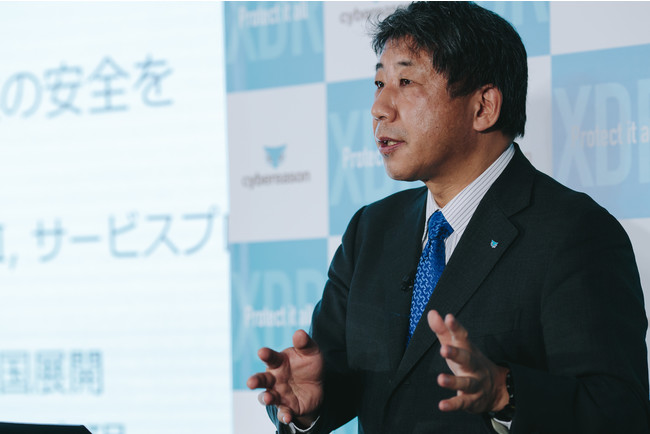 最後にサイバーリーズン・ジャパン株式会社 シニア・エグゼクティブ・バイスプレジデント 纐纈 昌嗣が「本市場での事業展開&パートナー戦略」について発表しました。