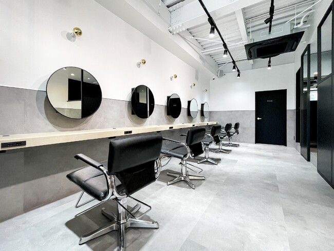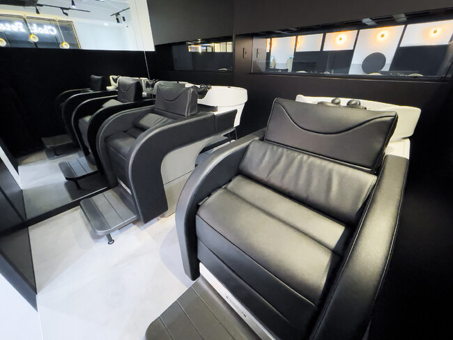 北千住東口店は、常磐線・千代田線・日比谷線・伊勢崎線・つくばエクスプレスが乗り入れるターミナル駅の北千住駅東口から徒歩3分の好立地に位置しております。学園通りの入口、東京電機大学に面している IT by ALBUM北千住店を左手に真っ直ぐ2分進んだ右手AIビル1Fへの出店となります。1号店の草加VARIE店は商業施設内の店舗でセット面2席でしたが、北千住東口店では路面店となりセット面5席と倍規模の店舗となります。