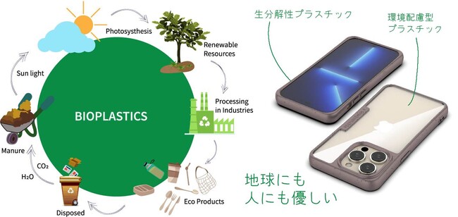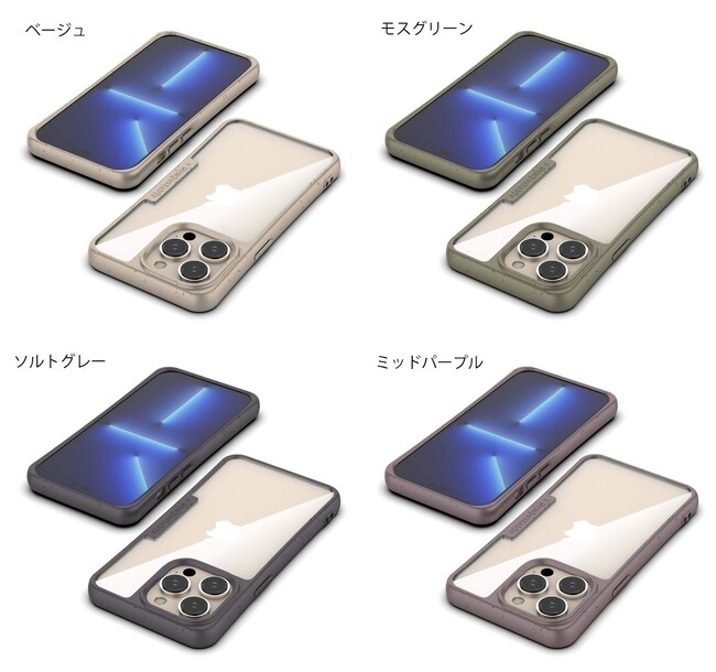 また、生分解性プラスチックだけでなく、一部環境配慮型プラスチックを併用することで、高い透明度の維持を実現しました。カラーはジェンダーカラー4色をご用意しています(現在の対応機種は「iPhone14 Pro」「iPhone14 Pro MAX」となります。)