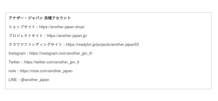 <アナザー・ジャパンの基本情報>