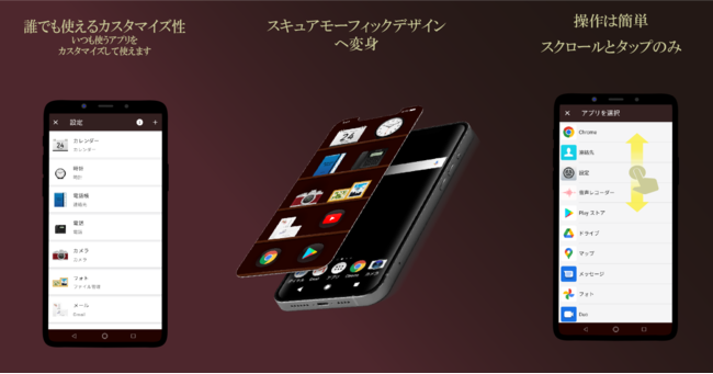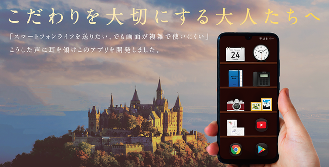 複雑すぎるスマホ画面の不要なものを一切排除して徹底的にシンプルにするだけでなく、上質で高級感を持たせ、不慣れなスマホにより親しみを感じ「持っていてうれしい」という感情を引き出し、皆さまが自信をもってスマホを使えている、その姿を想像して開発いたしました。