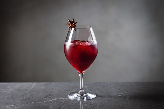 完全オーガニックで柔らかいスパイス味が特徴のプラナチャイを使用し、カルフォルニア・ナパヴァレーを代表するブドウ「ジンファンデル」のベリー感ある味わいとフランボワーズのピューレを合わせたグリューワインを感じさせるオリジナルカクテルです。
