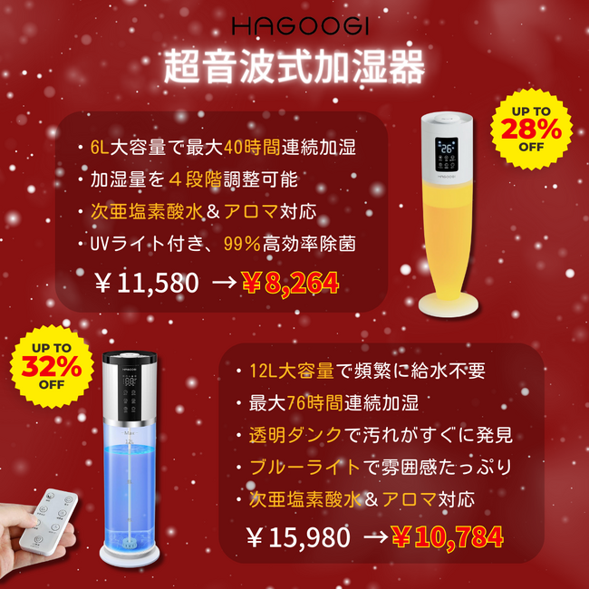 今年のクリスマスには、AmazonブラックフライデーセールでHAGOOGIの素晴らしい製品が最大のお得感で手に入ります!プレゼント選びにお困りの方、12月1日までの最大40%OFFを見逃しなく!