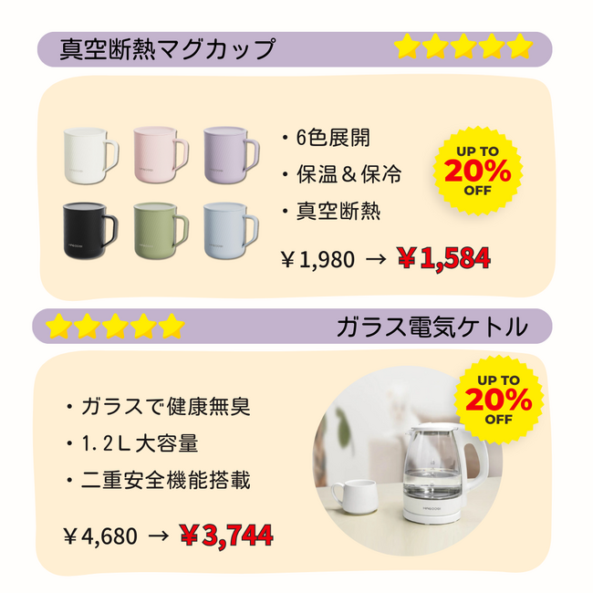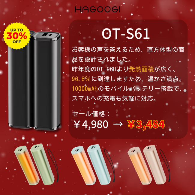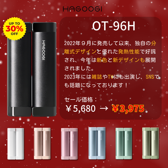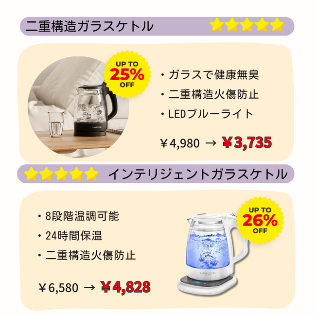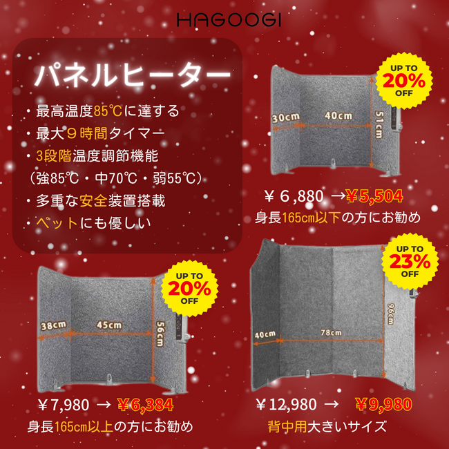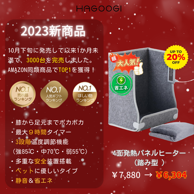 HAGOOGIは高品質かつ革新的な製品で知られており、今回のセールではその人気アイテムが特別価格で提供されます。例えば、新型大人気の充電式カイロ、機能性一位獲得のパネルヒーター、定番人気オシャレな電気ケトルなどが含まれています。