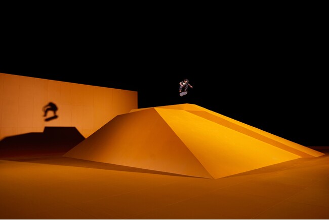 OTW by Vans x S.R. STUDIO. LA. CA.のローンチを祝して、スターリング・ルビーと共同開発されたスケートボードができるアートインスタレーションをロサンゼルスに設置いたしました。サンフランシスコのスケートボードシーンで有名な急斜面の丘を再現したこのインスタレーションは、“CLASH THE WALL” のスタイルを反映し、異なる高さのランプと大胆なネオンカラーで仕上げています。本インスタレーションは、現地時間2月28日(水)午後12時から午後4時まで、一般公開されます。