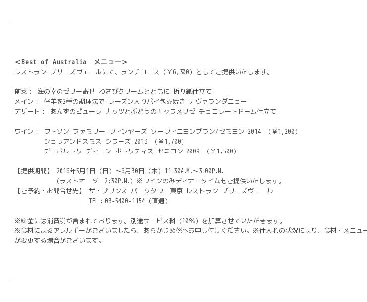開催されたメニューコンテスト「テイスト・オブ・オーストラリア」で、ザ・プリンス パークタワー東京