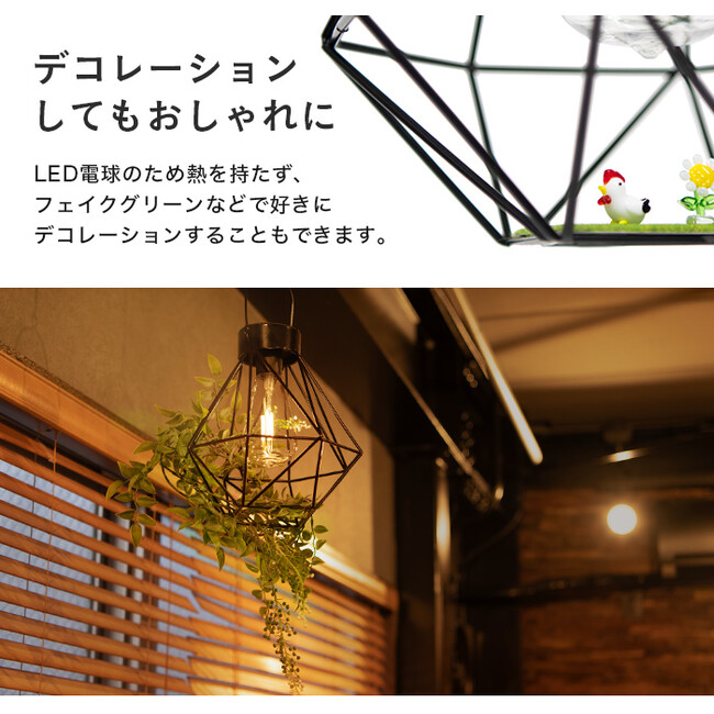 熱を持たないLED電球だから、ライト本体もデコレーションして、自分だけのオリジナルなおしゃれを演出できます。シンプルなデザインだから、フェイクグリーンやミニチュアなどお好みのデコレーションを楽しめます。