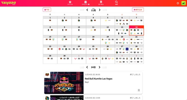 TAIYOROは過去に開催されたイベントのVOD配信から今後開催予定のイベントの配信情報まで、日本国内のeスポーツ大会の情報を網羅したeスポーツ観戦ファンのためのポータルサイトです。