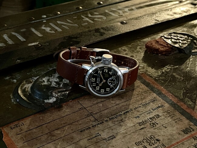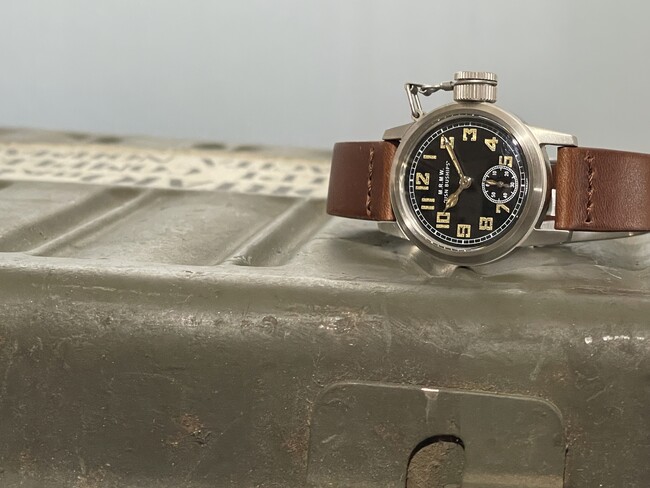 本日2023年2月28日Makuake 先行販売開始。名作ミリタリーウォッチのブシップスの希少なモデル大人仕様で忠実に復刻。希少スモセコ・アンティーク加工に革ベルト。異なる国産Bushipsスタート!