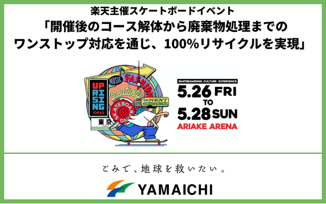 株式会社山一商事(本社:東京都港区、代表取締役社長 松本大輔、以下「山一商事」)は、楽天グループ株式会社(本社:東京都世田谷区、代表取締役会長兼社長 三木谷浩史、以下「楽天」)が主催するスケートボードイベント「UPRISING TOKYO Supported by Rakuten」(以下、「本イベント」)開催後のコース解体から廃棄物処理までのワンストップ対応を通じ、100%リサイクルを実現します。