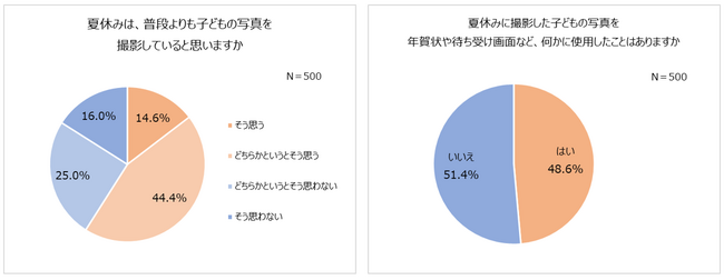 また、夏休み中に撮影した子どもの写真を年賀状や待ち受け画面に使用したことがあると回答した人も約半数おり、夏に撮影した写真は思い出に残すこと以外にも、様々な場面で使う傾向があることも分かりました。