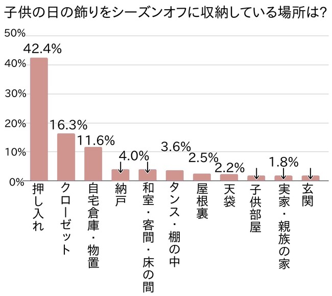 続いて、シーズンオフに子供の日の飾りをどこに収納しているのかを尋ねました。